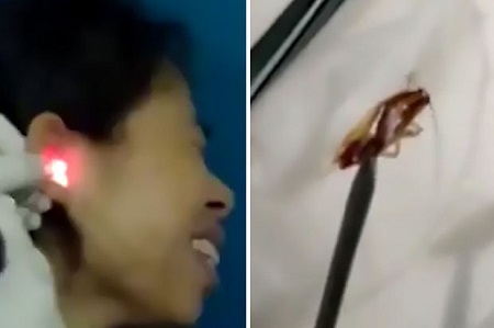 This is the moment doctors had to remove a live cockroach from a woman’s ear.